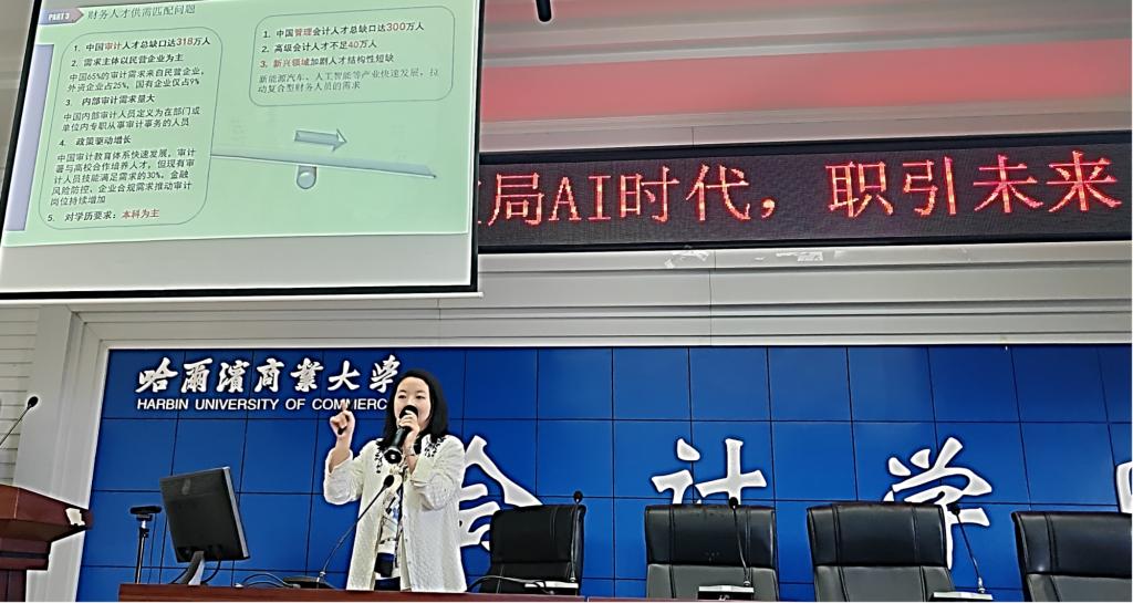 为助力会计学院学生深入了解人工智能时代的职业发展路径,迎接数字经济与AI技术深度融合给会计行业带来的变革与挑战,提升就业竞争力,会计学院于4月16日举办了“破局AI时代,职引未来”专题讲座。本次讲座由资深职业规划专家车崧女士主讲,会计学院副院长徐鹿和2022级学生参加了讲座。