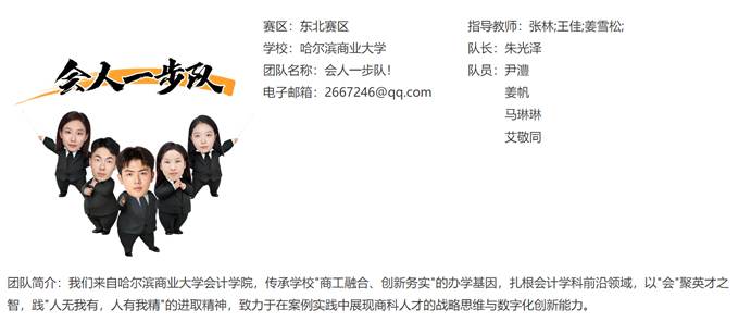 此次参赛队伍由哈尔滨商业大学会计学院MPAcc专业硕士研究生组成,在学院平台的支撑下,在资深导师团队的指导下,聚焦大赛提供的企业真实案例,从数据资产管理、数据资产价值挖掘等多维度展开深度研究。