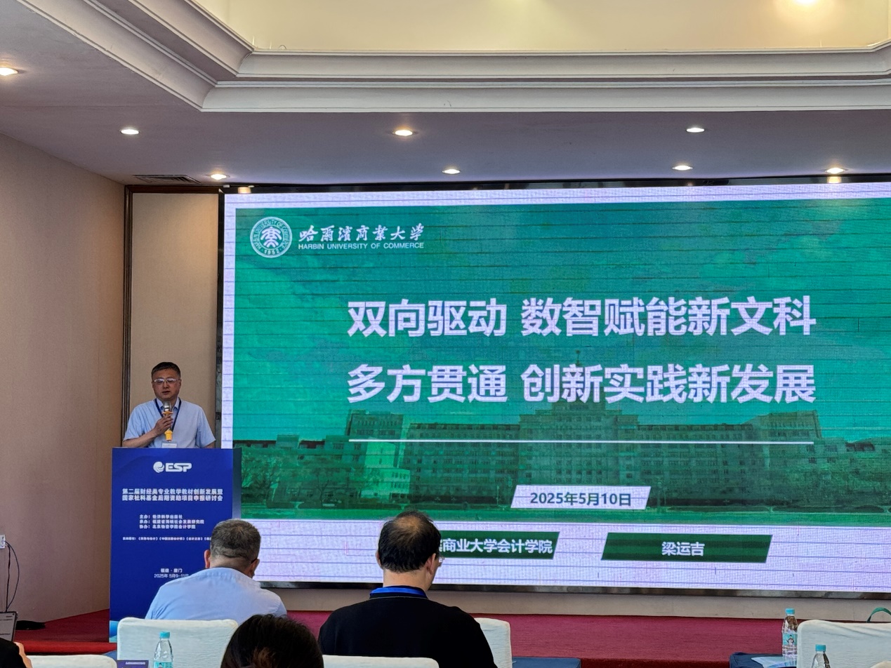 会计学院院长梁运吉教授,围绕《双轮驱动数智赋能新文科 多方贯通创新实践新发展》,分享了哈尔滨商业大学会计学院自主知识创新中心的建设成果。其展现的双轮驱动模式,为财经类专业打破学科壁垒、构建跨领域知识体系提供实践范本,助力新文科建设从理念走向落地。自主知识创新中心的建设成果,凸显了以数智技术赋能实践教学、培养复合型人才的创新路径,为高校应对人工智能时代对财经人才实践能力与创新思维的新需求提供参考。该分享揭示了高校与企业、科研机构贯通合作的机制,有助于推动教育链、人才链与产业链、创新链的有机衔接,为财经教育服务国家战略和区域经济发展注入新动能,也为同类院校深化教学改革提供了可借鉴的 “哈商大经验”。