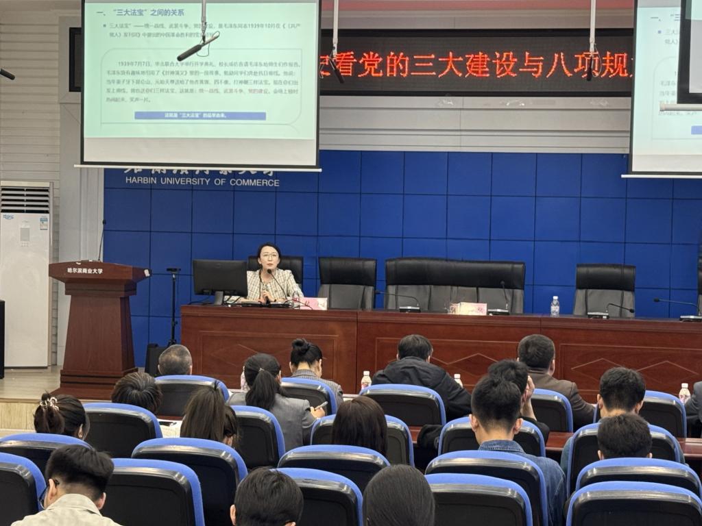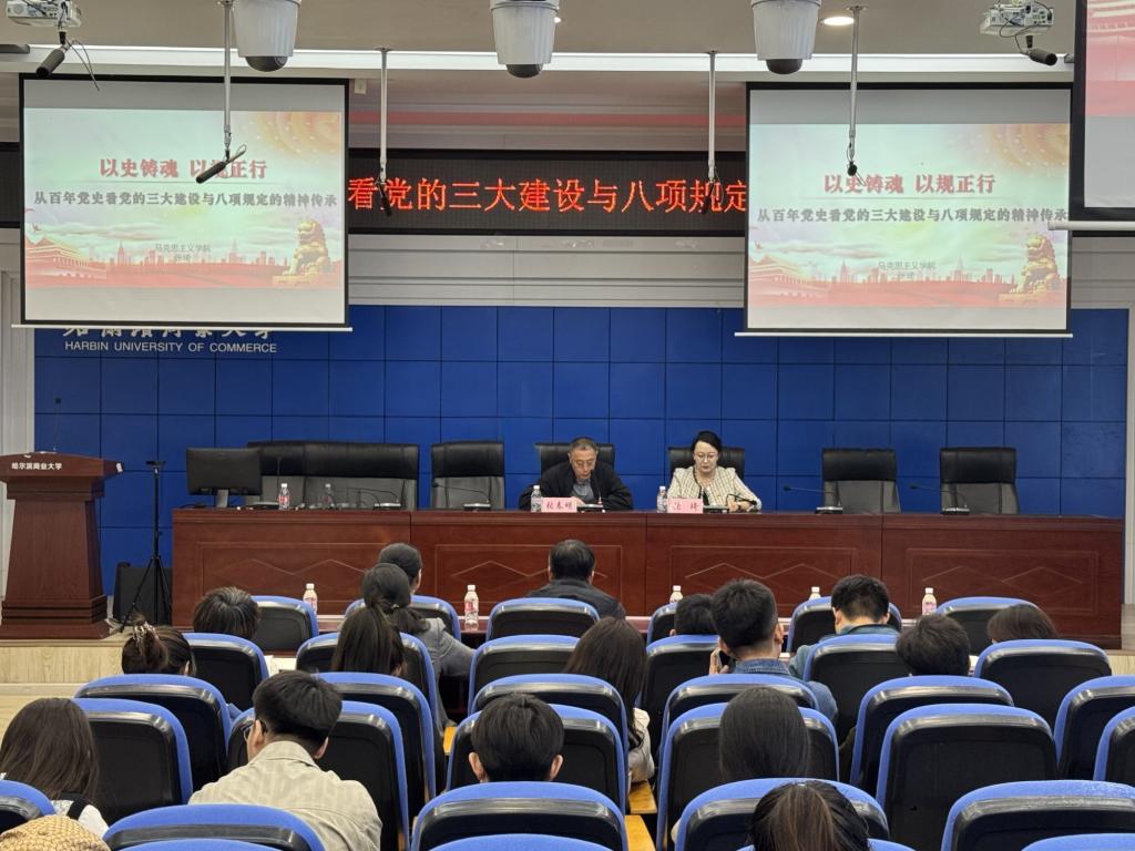 为深化干部能力作风建设,推进全面从严治党向纵深发展,扎实推进深入贯彻中央八项规定精神学习教育,5月14日下午,在1号楼1501会议室,马克思主义学院概论教研室主任、校理论宣讲团成员张琦以《从百年党史看党的三大建设与八项规定的精神传承》为题,为会计学院、金融学院、经济学院、商业经济研究院全体教师党员干部进行深入贯彻中央八项规定精神学习教育专题辅导。会计学院党委书记张春明主持会议。