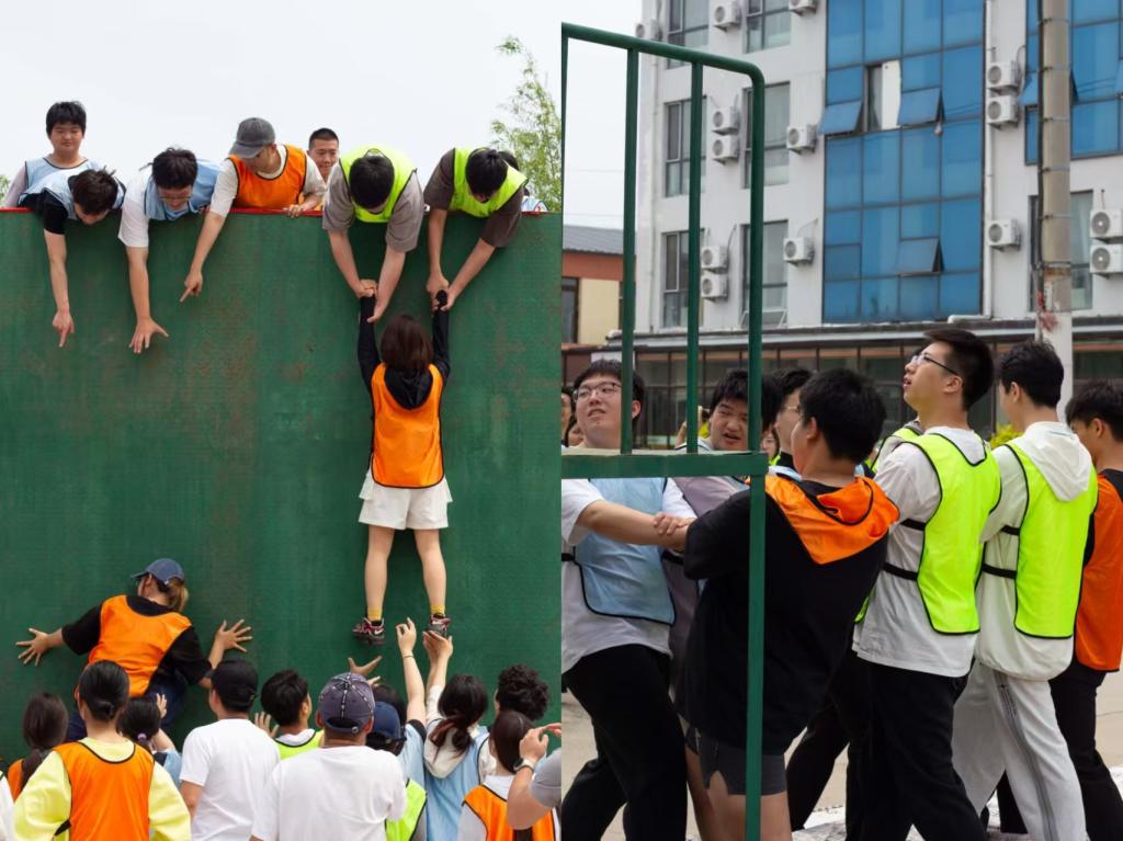 在“信任背摔”环节中,学员们克服心理恐惧,在队友的保护下完成后倒动作,深刻体会到信任与责任的重要性;而“毕业墙”项目则考验团队凝聚力,全体成员协作搭建“人梯”,在规定时间内完成攀爬任务,现场掌声与欢呼不断。