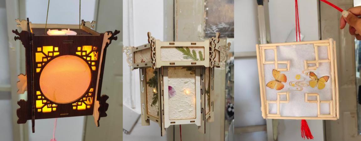 “巧手寄情传统体验”活动中,学生们制作了精巧的花灯。点亮的花灯在镜头前熠熠生辉,手绘的嫦娥和玉兔在光影里流转,学生们在赏灯过程中定格美好瞬间,感受着中秋的暖意和团圆的温情,深化了对传统文化的理解。