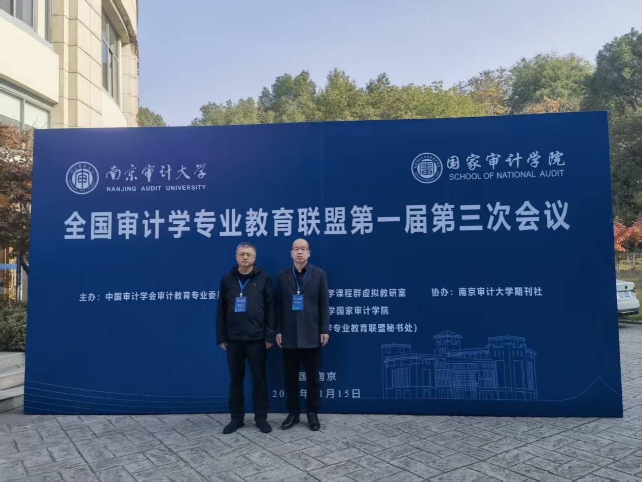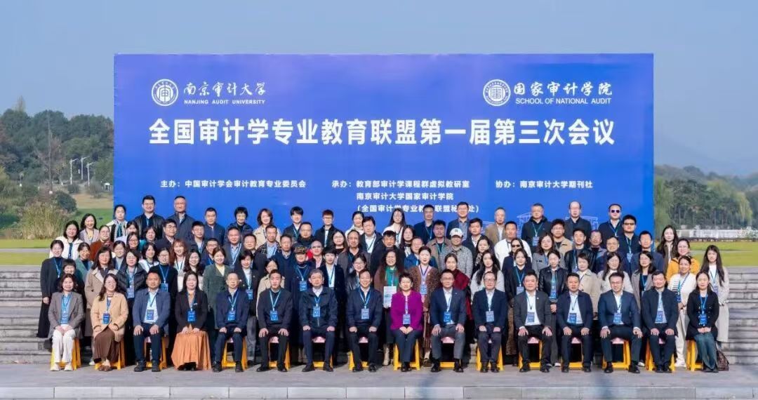2025年11月15日,全国审计学专业教育联盟第一届第三次会议在南京审计大学召开。会议围绕“中国审计学自主知识体系建设与审计教育高质量发展”的主题开展深入研讨。会计学院院长梁运吉教授与朱大鹏老师参加了本次学术盛会,与来自全国各地的审计学者和专家共同探讨中国审计教育的未来发展路径。