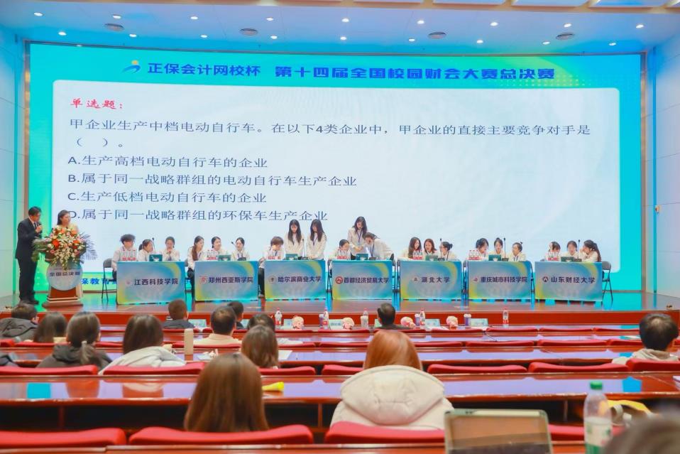 2025年11月23日,由中国高等教育学会指导,正保远程教育、正保会计网校举办的“正保会计网校杯”第十四届全国校园财会大赛全国总决赛于武汉圆满结束。本次比赛共有来自全国各省市脱颖而出的8支高校代表队参赛。分别是山东财经大学、哈尔滨商业大学、首都经贸大学、湖北大学、重庆城市科技学院、江西科技学院、郑州西亚斯学院、湖北第二师范学院,最终哈尔滨商业大学本科生队伍荣获全国第一名,并授予特等奖项。