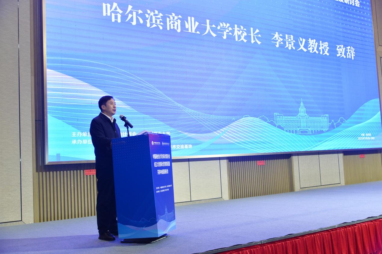 哈尔滨商业大学校长李景义教授在致辞中详细介绍了哈尔滨商业大学的办学历史、学科优势及审计学科建设成果。李景义校长表示,学校将积极贡献智慧资源,探索审计教育新范式,与各方携手将审计教育分会与审计优秀教育资源共享中心打造成滋养中国审计教育的重要平台,为服务中国式现代化建设贡献审计教育的智慧和力量。