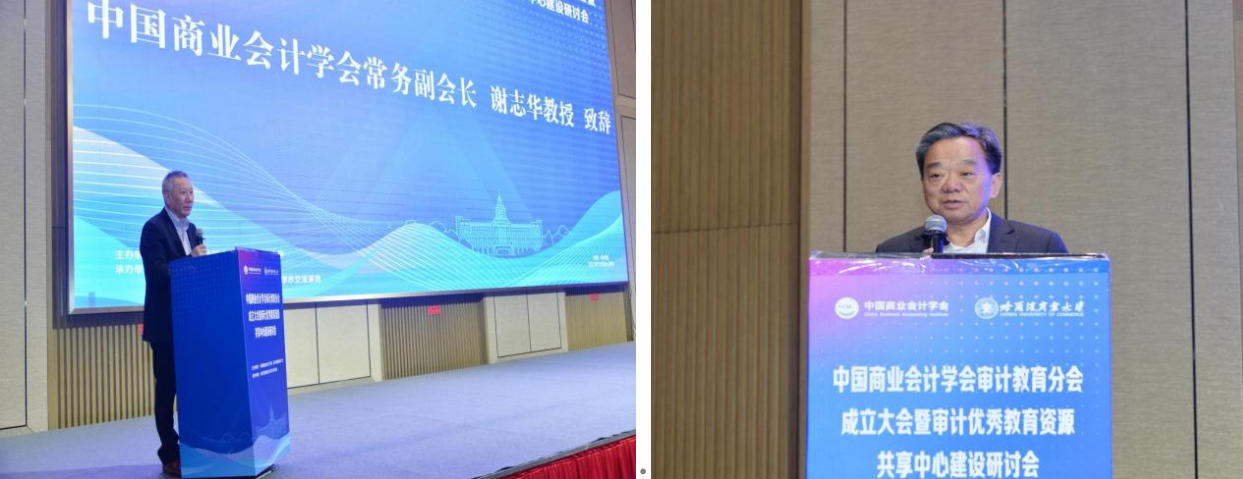 中国商业会计学会常务副会长谢志华教授在致辞中回顾了学会与各商业院校的深厚渊源,对审计教育分会的成立表示热烈祝贺,期待分会成为凝聚行业力量、推动审计教育创新发展的核心阵地。