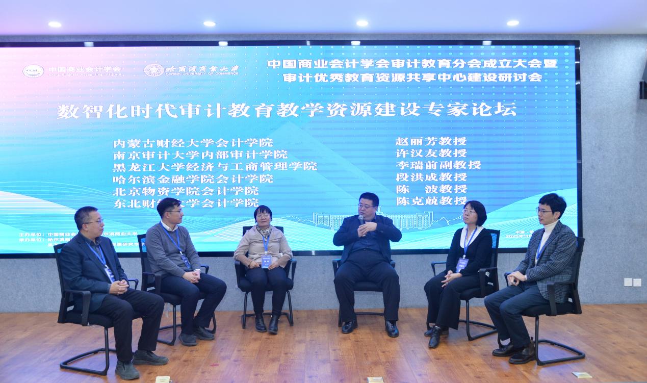 在“数智化时代审计教育教学资源建设专家论坛”环节,来自内蒙古财经大学、南京审计大学、黑龙江大学、哈尔滨金融学院、北京物资学院、东北财经大学的专家学者围绕审计理论与实践融合、教学案例研发与应用等议题展开深入研讨,为审计教育教学改革提供了丰富思路。