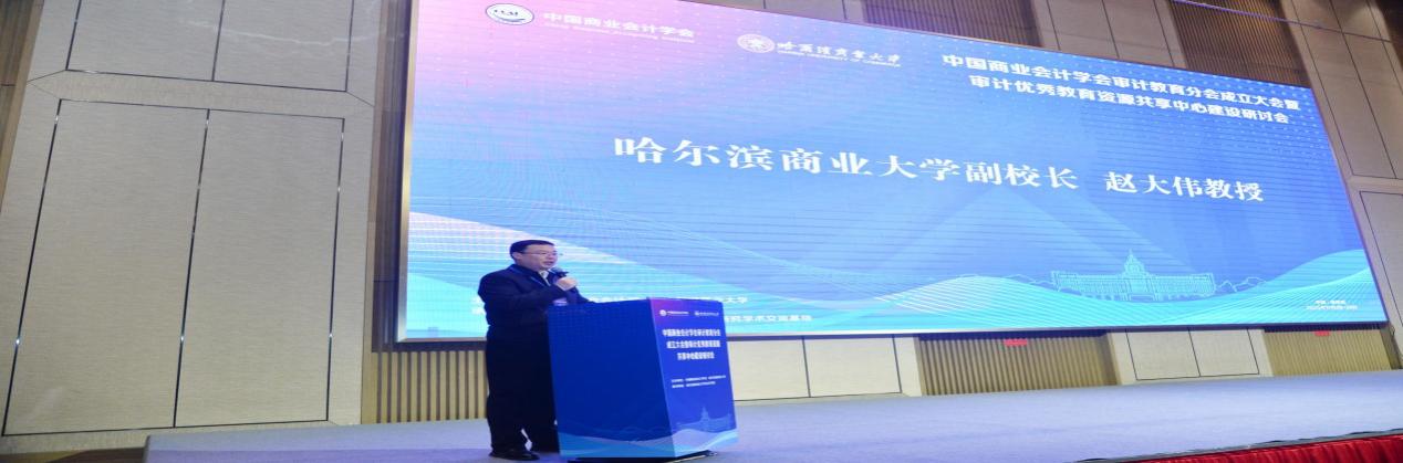 11月29日,中国商业会计学会审计教育分会成立大会暨审计优秀教育资源共享中心建设研讨会在哈尔滨商业大学隆重召开。本次大会以“智慧赋能、资源共享、拥抱未来”为主题,汇聚了来自中国商业会计学会、南京审计大学、北京交通大学、北京工商大学、首都经济贸易大学、东北财经大学、山东财经大学、西南财经大学、北京物资学院、东北农业大学、黑龙江大学、新疆财经大学、西藏民族大学等全国20多所高校的院系领导、分会理事单位代表、审计专家学者和长期关注审计教育事业发展的各界人士,共同探索新环境审计教育教学改革与未来,共商审计教育高质量发展大计。