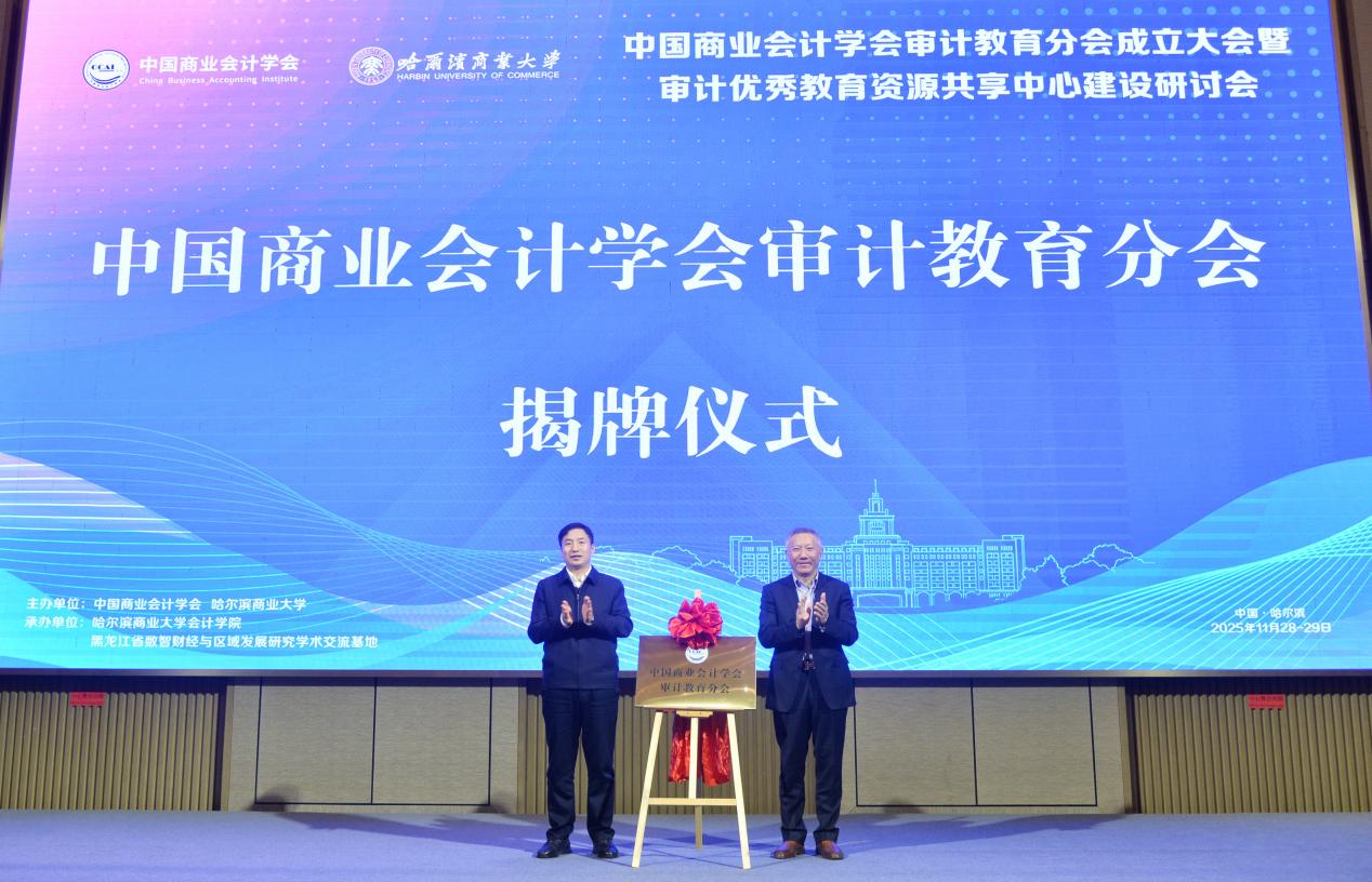 中国商业会计学会审计教育分会由我院牵头,联合国内15所院校发起,2025年11月正式批准设立,目前拥有30家理事单位,我院是分会会长单位。本次“中国商业会计学会审计教育分会成立大会暨审计优秀教育资源共享中心建设研讨会”由我校和中国商业会计学会主办,会计学院和黑龙江省数智财经与区域发展研究学术交流基地承办。中国商业会计学会执行副会长谢志华教授、孙宝厚博士、中国商业会计学会李凤雏副会长、哈尔滨商业大学校长李景义教授、哈尔滨商业大学副校长赵大伟教授等出席会议。