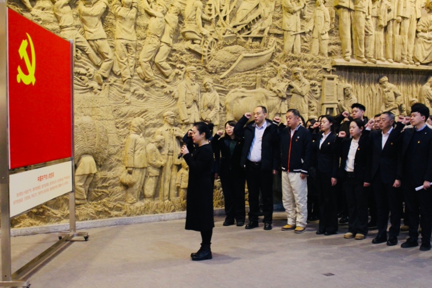 参观完毕之后,全体党员满怀对此次红色教育的感悟与热忱,饱含对党的无限忠诚与崇高敬意,铭记革命先辈的奋斗初心与使命担当,面对党旗重温入党誓词,在财务管理党支部书记崔莹同志的带领下庄严宣誓,全体党员回望入党之初的赤诚之心,同时激励自己进一步凝聚起以党建联建引领高校党建提质增效,以校企融合赋能人才培养与科研创新的强劲动力,为学院培养高素质应用型人才,服务区域经济实现高质量发展注入持久动力。
