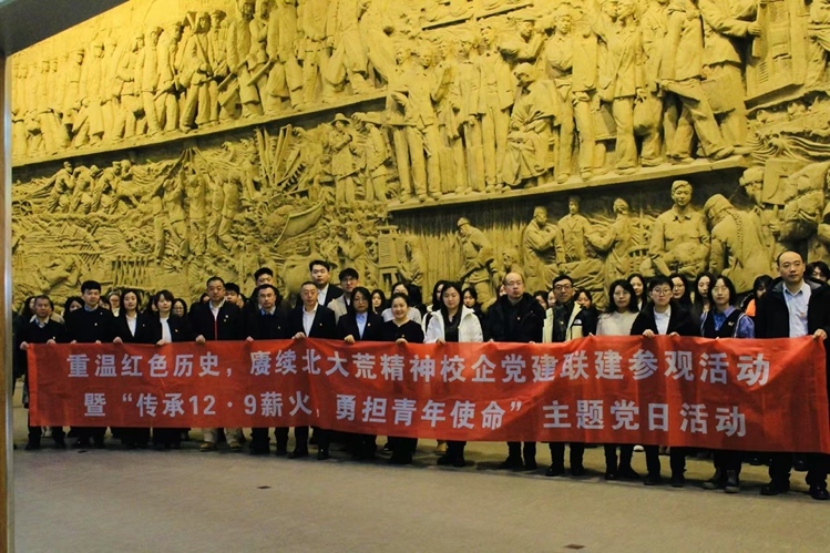 2025年12月9日上午,在北大荒集团博物馆,哈尔滨商业大学会计学院财务管理教研室专任教师党支部教师党员参加了学院组织的校企党建联建主题党日活动,此次活动主题为“‘重温红色历史,赓续北大荒精神’校企党建联建参观活动暨‘传承12·9薪火,勇担青年使命’主题党日活动”。此次主题党日活动由学院联合中审众环会计师事务所黑龙江分所、省龙睿资产经营公司、省建投集团、省农投集团、省交投集团、省新产投集团、新道科技股份有限公司黑龙江分公司等七家校企合作单位共同开展。