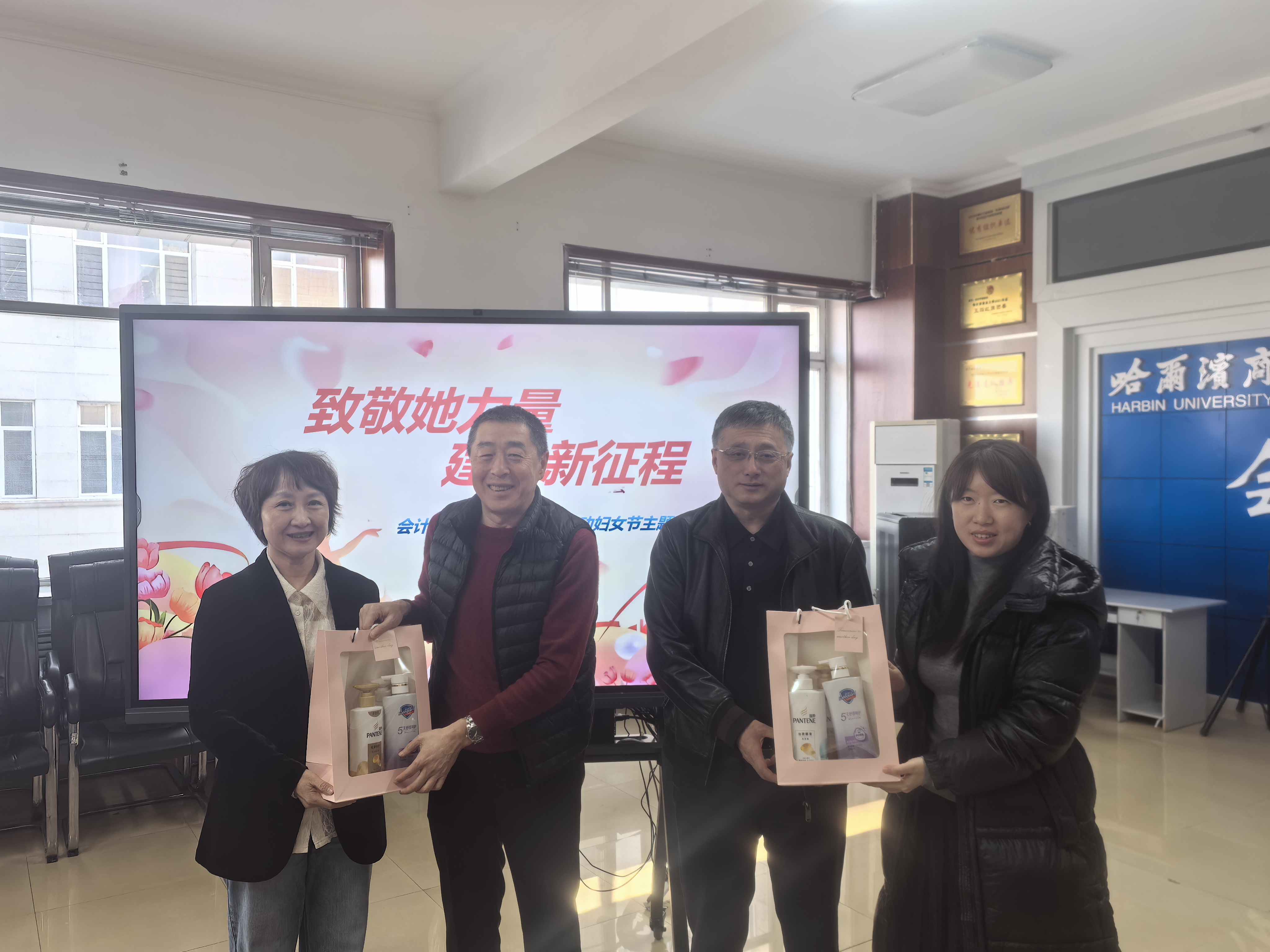 随后,学院领导为全体女教职工送上精心准备的节日礼物,传递学院的温暖与关怀,现场氛围温馨融洽、暖意融融。