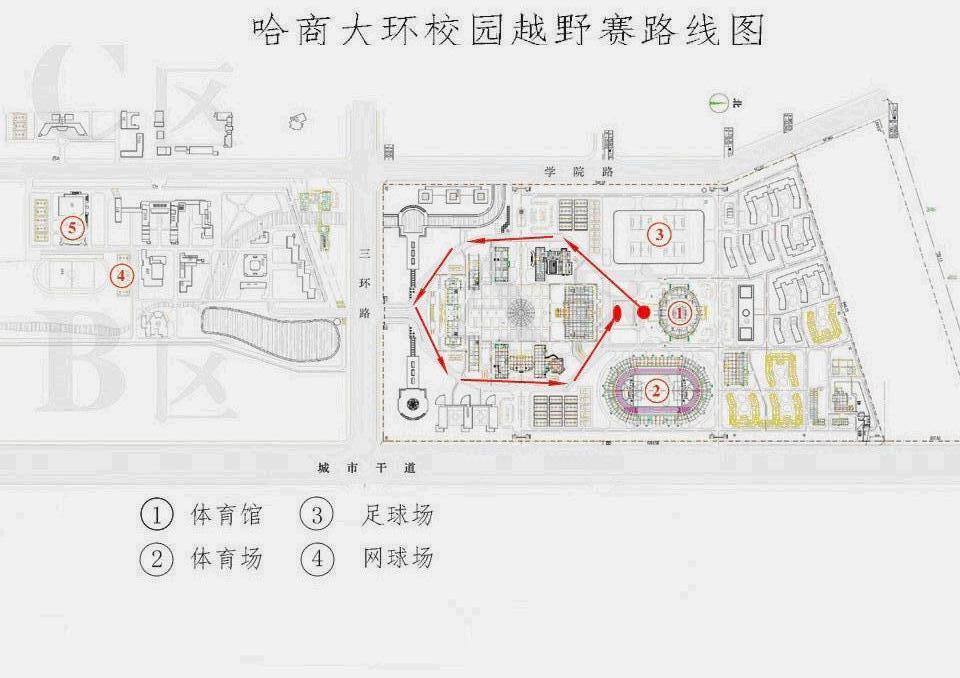 教 工:男女路线相同,为一圈,起、终点设在体育馆广场。