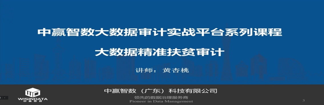 黄杏桃老师首先进行了培训的第一部分《大数据审计概述》。在本节开始,黄老师为大家分享了当下审计的新趋势,强调了人工智能、大数据、数据库等信息技术在当今审计活动的重要性,并从自然语言处理技术(NLP)、文本识别(OCR)、网络爬虫、数据库对象关系映射(ORM)、数据可视化技术(BI)、图数据库和联机分析处理过程(OLAP)等多个角度阐述了大数据技术在审计中的具体应用方式。第二部分《大数据精准扶贫审计案例》。本节课中,黄老师选择了大数据审计实战平台中以《扶贫》为例的数据库,为同学们进行了详细的操作教学。利用大数据审计实战平台运用大数据技术对扶贫对象进行精准识别,旨在了解和体验当下审计人员是如何利用大数据技术进行审计,以及简单学习SQL技术在审计中的应用。