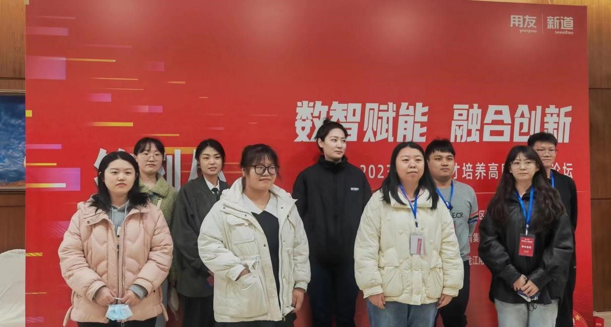 “未来已来”,经济社会面临未有之大变革。科技飞速发展、产业深刻变革,新挑战、新机遇相伴而生,会计学院秉承“厚德笃学、勤勉致新”院训,带领广大师生继承商大会计学院红色基因,踔厉奋发、锐意进取,密切关注实务前沿和产业需求。锚定未来,走进企业、2023年3月24日,会计学院2022级会计专硕、审计专业硕研究生参加了由中国商业会计学会、中国移动通信联合会区块链专业委员会为指导单位,新道科技股份有限公司、用友职业教育集团为主办单位,北大荒完达山乳业股份有限公司、黑龙江用友网络科技股份有限公司为支持单位的《数智赋能 融合创新——2023年院校人才培养高质量发展论坛》,感受数字应用和数字决策赋能企业发展,并不断提升自身数智素养。