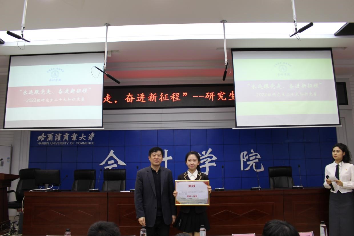 本次知识竞赛从筹备到成功举办,得到了学院党委和学院各位领导的高度关注与大力支持。在大家共同的努力下,“永远跟党走、奋进新征程”党的二十大知识竞赛活动画上了圆满的句号。通过此次比赛积累的知识和经验,进一步加深了同学们对党史知识、二十大报告内容的理解和掌握,切实提高了学生们的思想政治素质,促进了同学们更好的深化对党的重大理论、方针、政策的认识与理解,进一步树立了坚定的理想信念,同时也展现了会计学院研究生的热爱祖国、热爱党、热爱祖国大好河山的精神面貌。