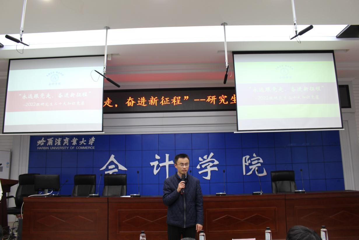最后,姜雪松副院长对本次活动作总结讲话,他指出本次党的二十大精神知识竞赛活动举办地非常成功,这种鲜活的学习形式对于我们理解党的二十大精神是非常有益的。学习宣传和全面贯彻落实党的二十大精神和党中央决策部署,是当前和今后一个时期全党全国的首要政治任务,我院研究生应积极努力深入学习贯彻党的二大精神,从思政引领方面推动学院高质量发展。