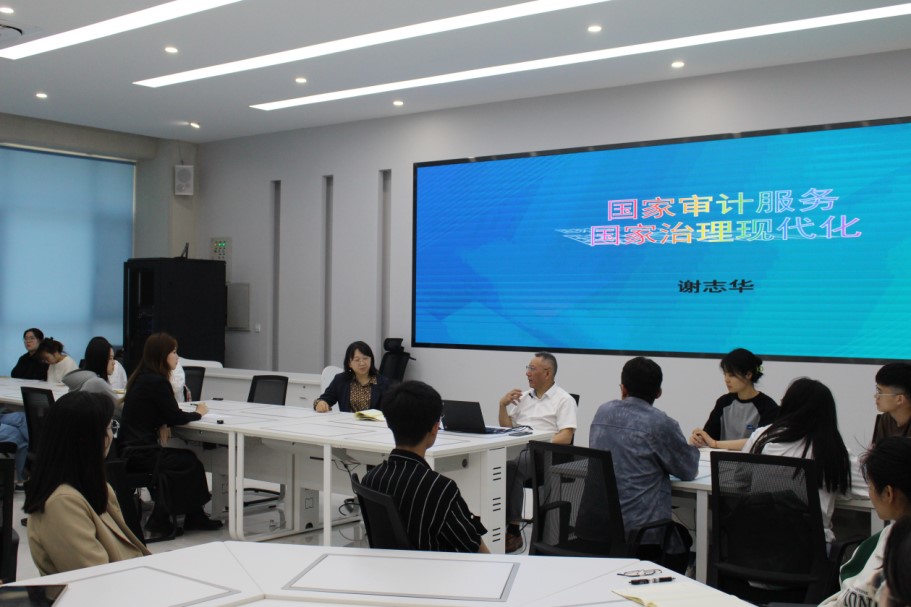 讲座中,谢志华教授以问题本源引发深入思考、以场景感知重构知识体系,以研究创新探讨审计职能发展。谢教授以信息不对称探讨“问题产生和解决办法”,从微观主体的公司治理有效认知,进而讨论宏观的国家现代化治理,从业务、信息和激励机制的场景融合,研究探讨国家审计服务国家治理的有效路径。讲座内容富含深刻的哲学思考和积极的人生观、世界观。