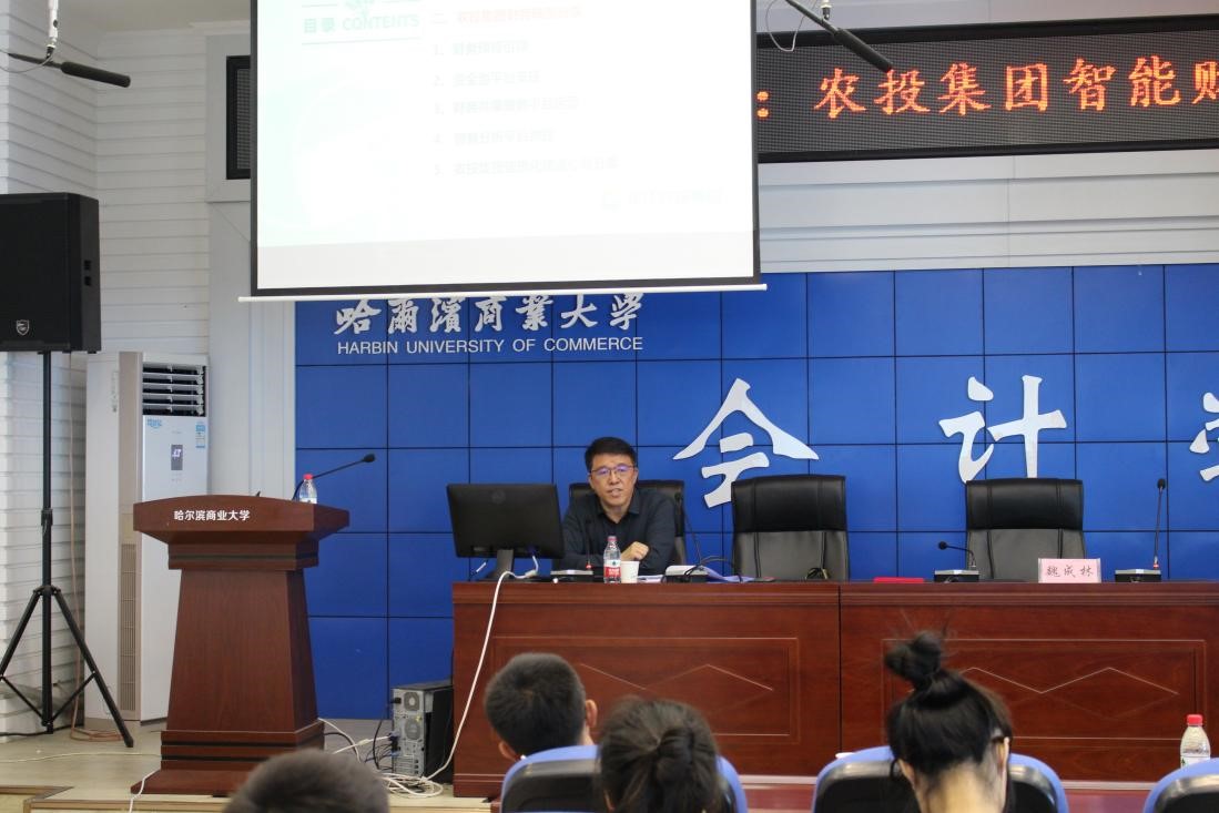 发展数字经济已成为全球共识,被称为“打开第四次工业革命之门的钥匙”,数字经济、数字化转型、智能化和大数据正在成为各行各业的热门话题。6月19日上午,会计学院在学术报告厅1501举办了以 “奋进新征程 建功新时代——农投集团智能财务转型之路”为主题的学术讲座。本次讲座邀请了黑龙江省农业投资集团有限公司党委委员、总会计师魏成林作为主讲嘉宾。会计学院院长张劲松、副院长梁运吉、副院长姜雪松、智能会计教研室主任刘阳、学院部分青年老师以及2022级全体硕士研究生(会计学硕士、会计专业硕士、审计专业硕士)参加此次活动。副院长姜雪松主持会议。