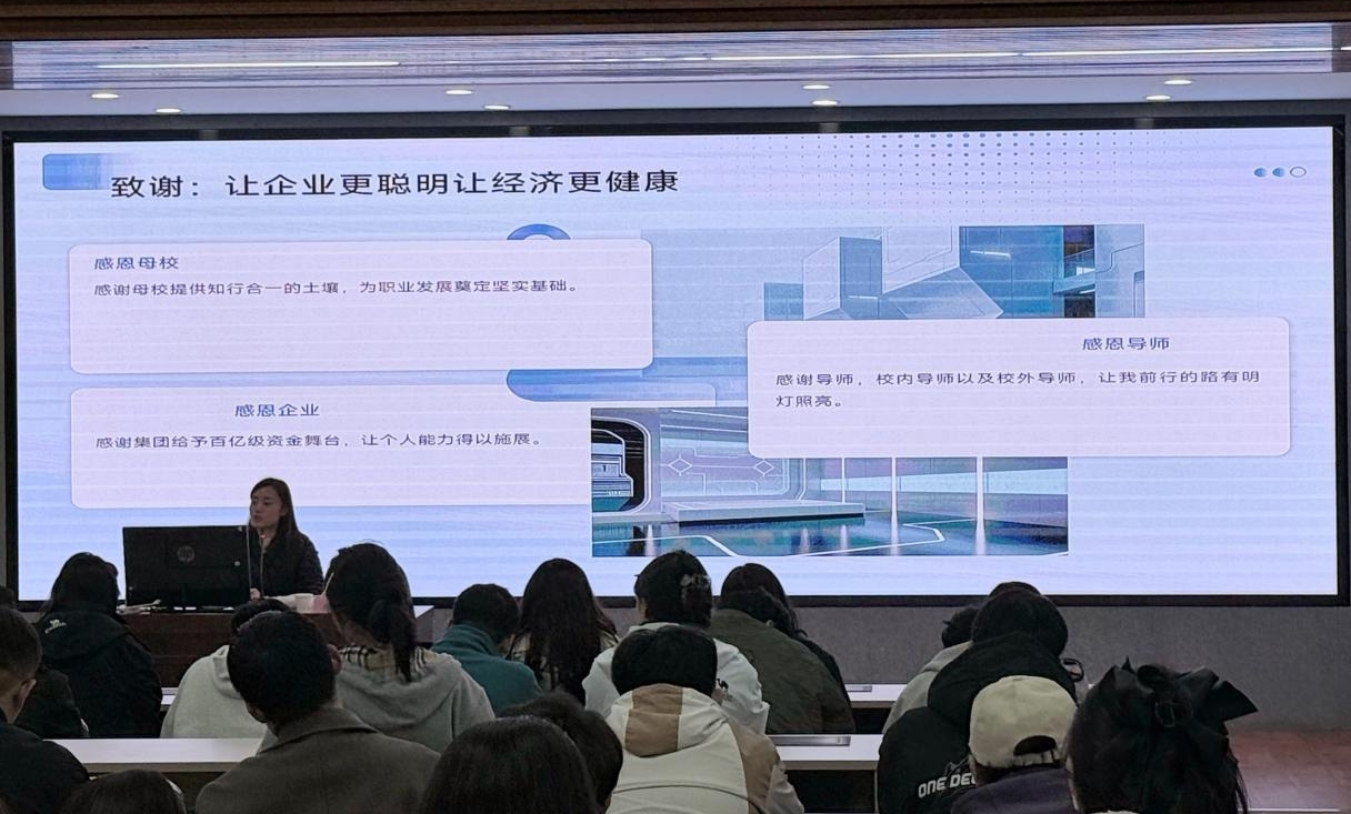 讲座中,陈思校友分享了自己从本科国际会计专业到会计学硕士的成长历程,以及在财务领域的十年跃迁之路。详细介绍了在财务领域的成长历程和项目实战经验。从2015年在中国广电黑龙江分公司担任出纳与BOSS系统稽核开始,逐步成长为农投集团财务部高级业务经理,参与了多个重要项目的建设,包括财务共享中心和资金池的搭建。强调资源整合、流程优化和风险管理的重要性,并分享了在项目实施过程中遇到的挑战和应对策略。同时,陈思还分享了正在参与的司库升级项目,介绍了司库体系的任务与目标,以及通过数据转型提升资金管理效率和风险防控能力的实践经验。鼓励同学们保持学习的热情,不断提升自己的专业能力,并在职业生涯中坚持诚信、守责和创新。