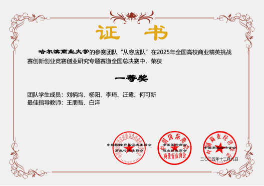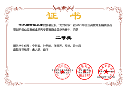 全国高校商业精英挑战赛创新创业竞赛是教育部认可的高水平学科竞赛之一,其中创业研究专题赛道重点考察研究生在商业问题识别、研究方法运用、数据分析与成果表达等方面的综合能力,对参赛团队的学术规范性和实践价值提出了较高要求。我院研究生在该赛道取得的优异成绩,是学院持续深化研究生培养模式改革、强化“以赛促学、以赛促研”的重要成果体现。