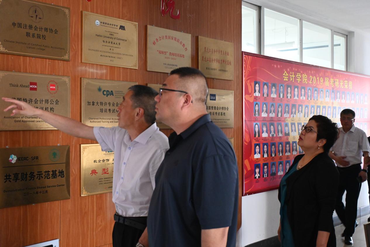 座谈和授牌仪式开始前,张春明书记带领哈尔滨新区审计局同志参观会计学院,详细介绍了会计学院的发展历程、教学理念和特色专业。