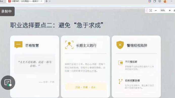 她以查理・芒格的 “人生不是短跑,而是一场马拉松” 寄语学子,职业发展不必急于求成,要把每个岗位当作修炼场,在日复一日的沉淀中打造不可替代的竞争力,拒绝频繁跳槽、短视择业。