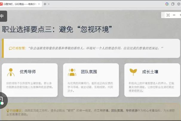选择职业时,要关注导师资源、团队氛围与平台长期价值,这些因素对个人塑造的影响,远比短期薪资更深远。